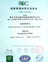我公司振動平臺產品通過ISO9001-2000質量體系認證,為新老客戶又增添了一份質量方面的保障